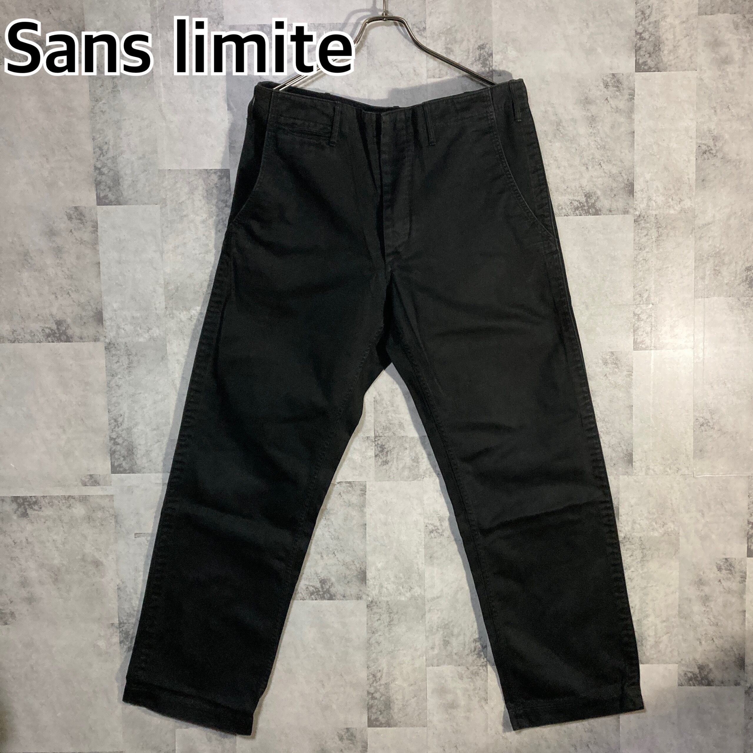 日本製Sans limite サンリミット ワークパンツ ブラック ボタンフライ コットン チノパン