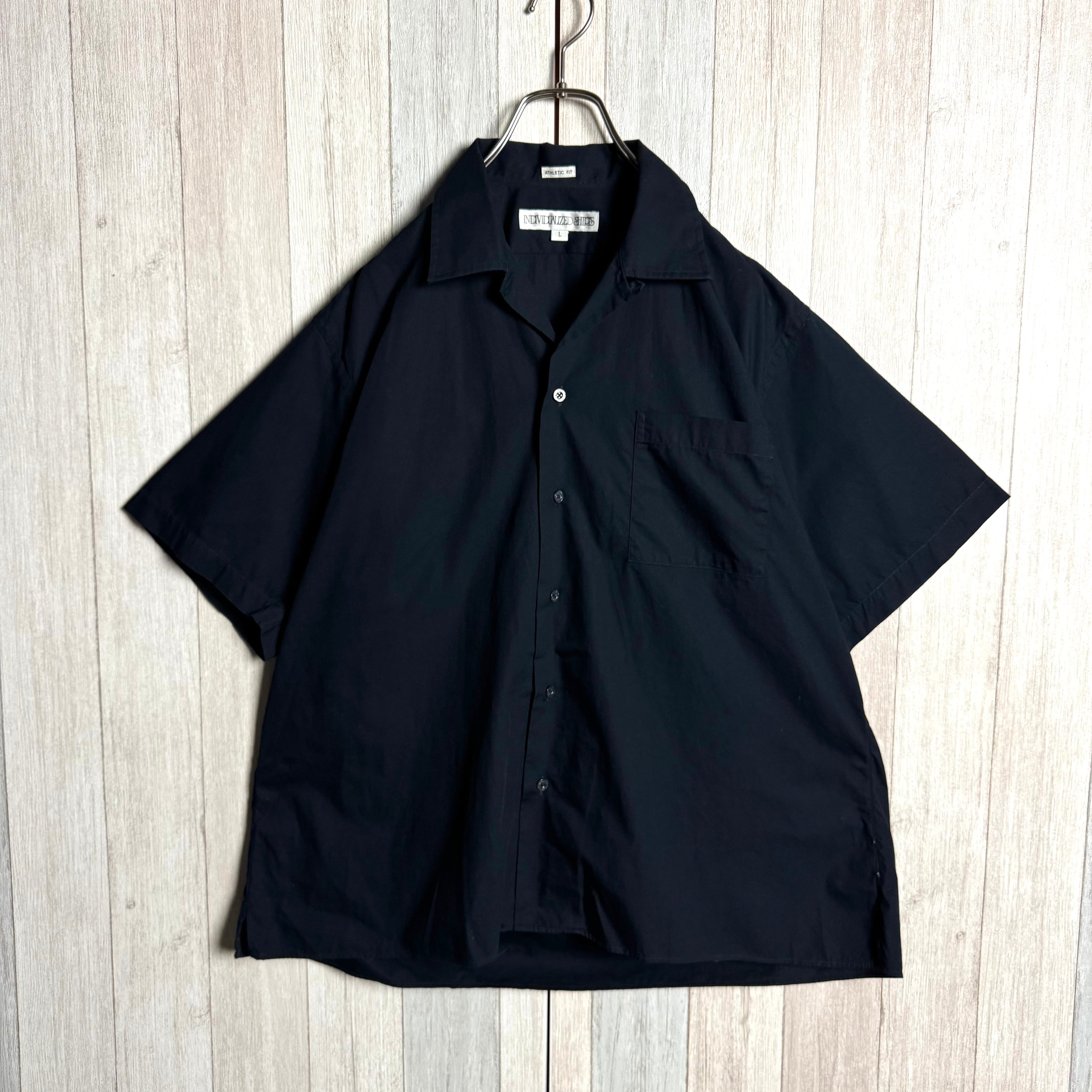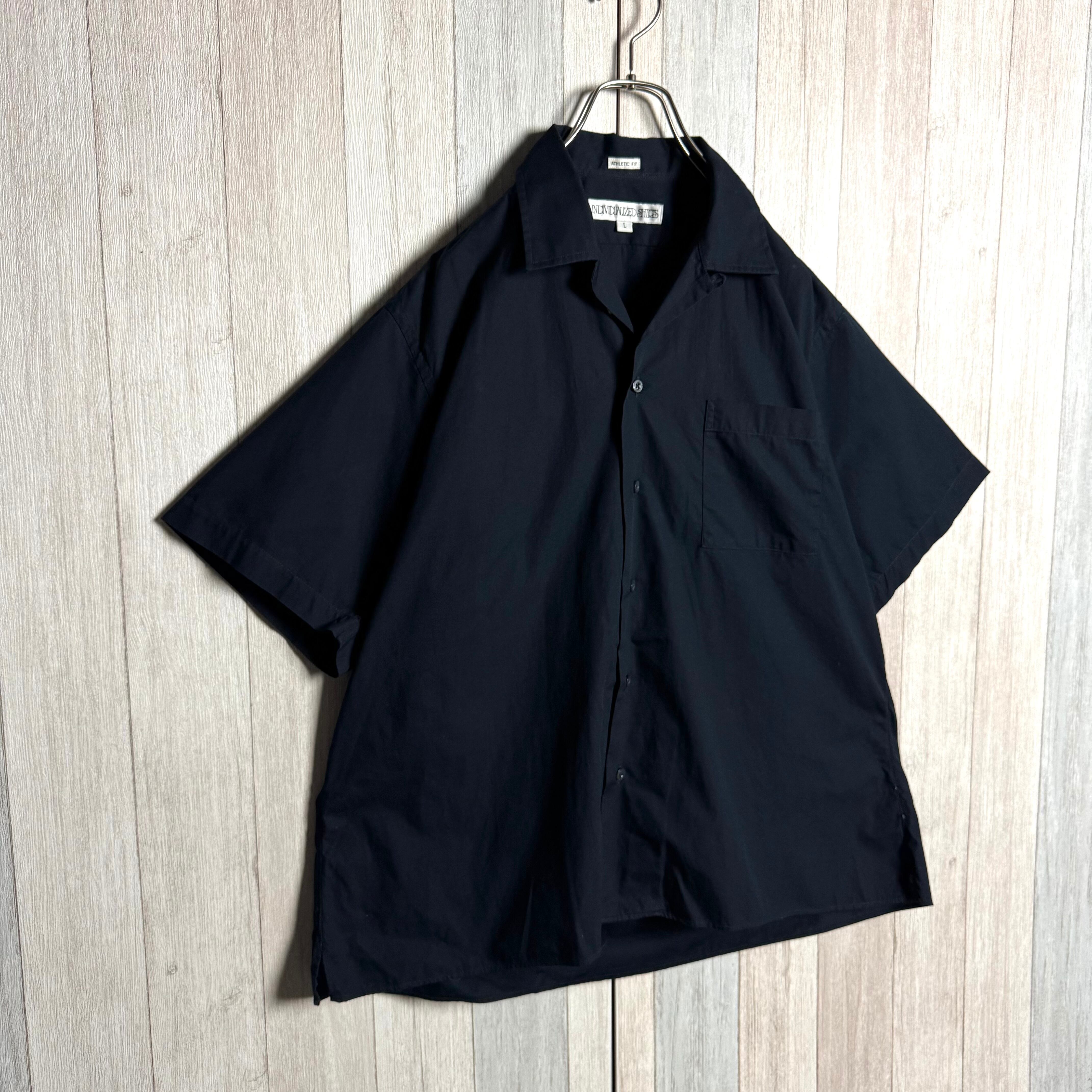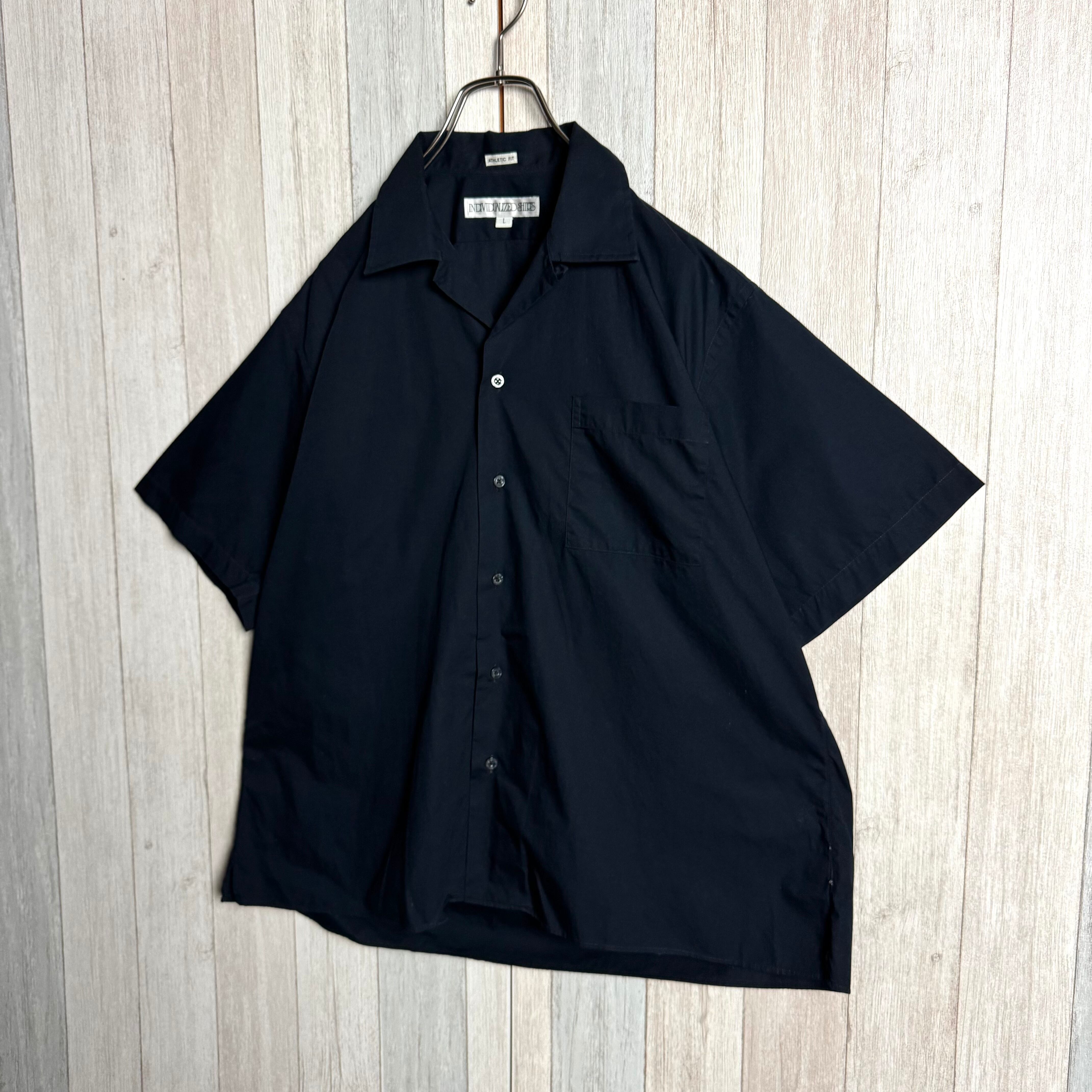 USA製 INDIVIDUALIZED SHIRTS インディヴィジュアライズド シャツ 半袖 オープンカラーシャツ コットン ネイビー L