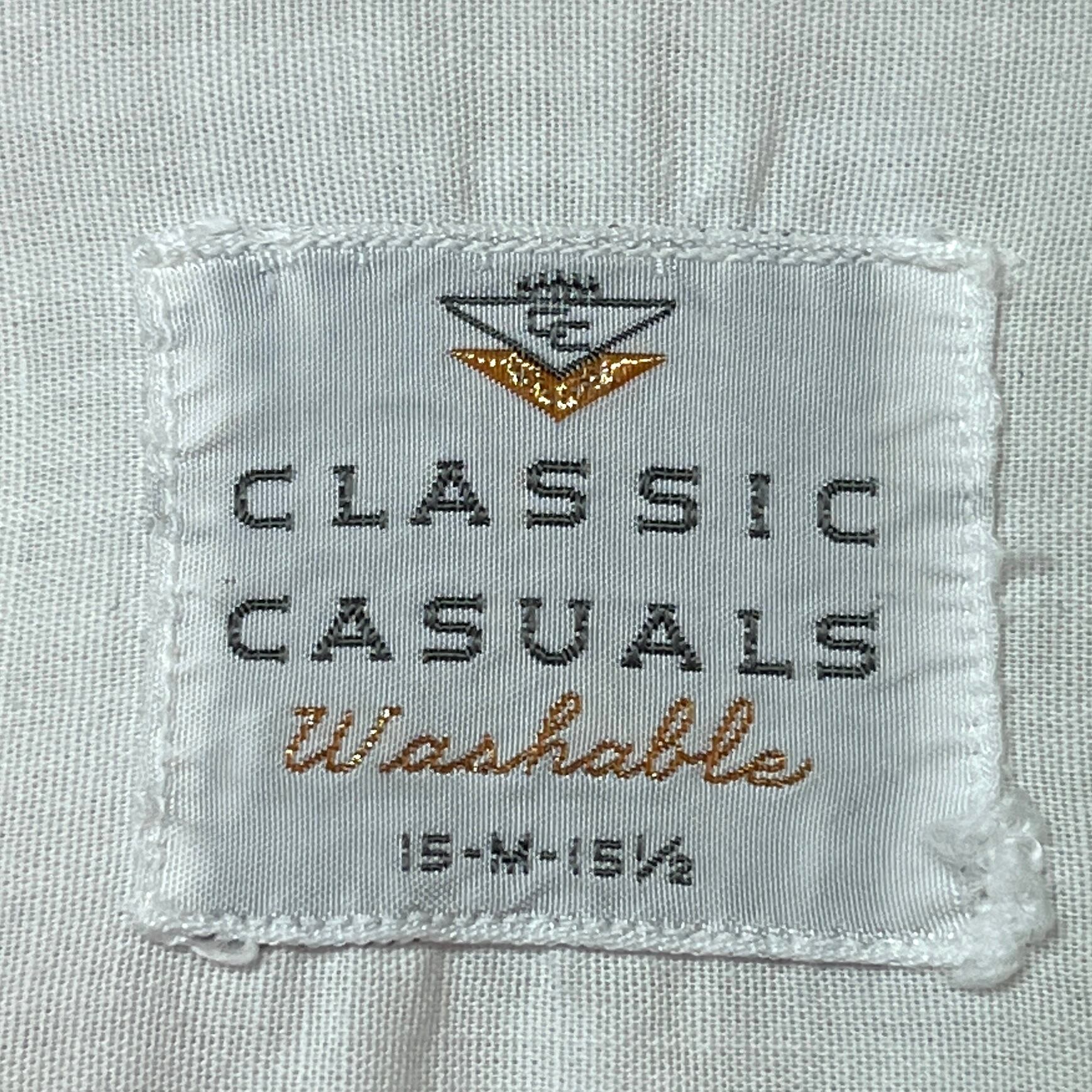 60s USA製 CLASSIC CASUALS 半袖開襟コットンシャツは、クラシカルかつカジュアルなデザインが特徴的な一着です。ベースのホワイトに、襟・袖・胸のレッドのボーダーが効いています。着用すると、爽やかでスタイリッシュな印象を与えます。