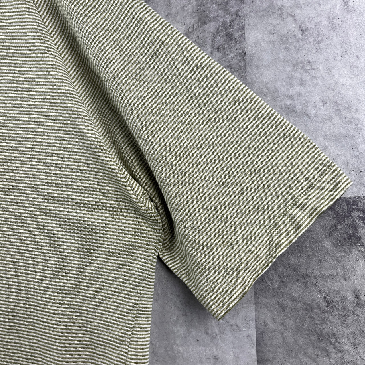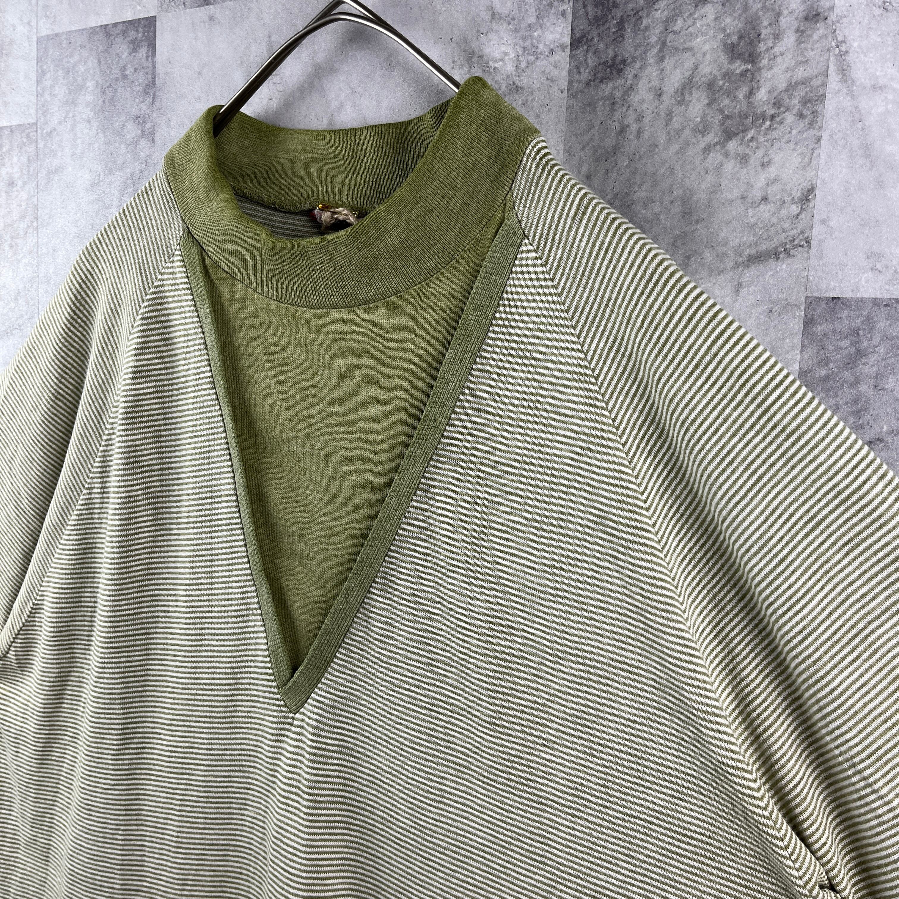モックネックとボーダー柄が絶妙にマッチした、非常におしゃれで個性的な一着です。