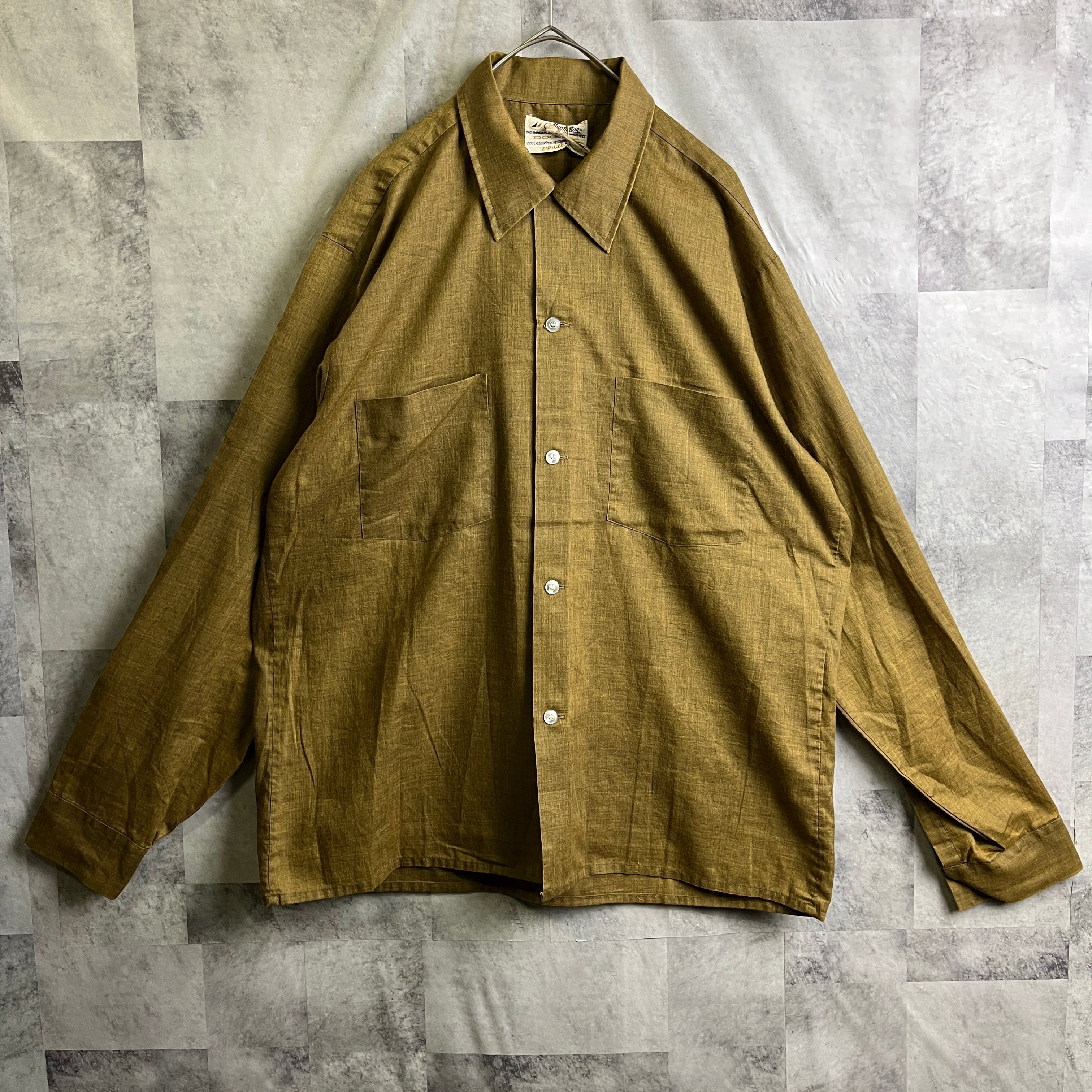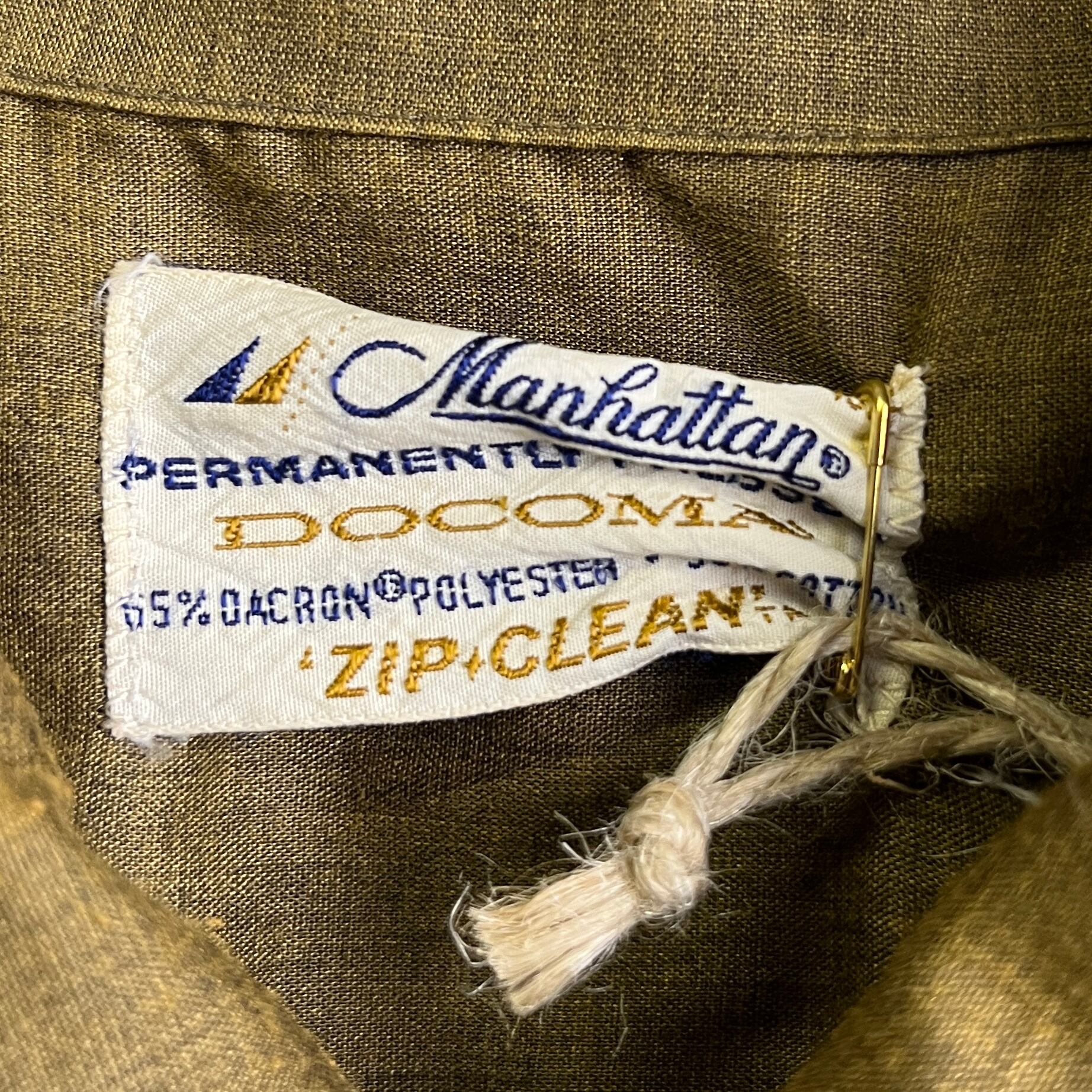 70s ヴィンテージ Manhattan ボックスカットシャツ カーキ M