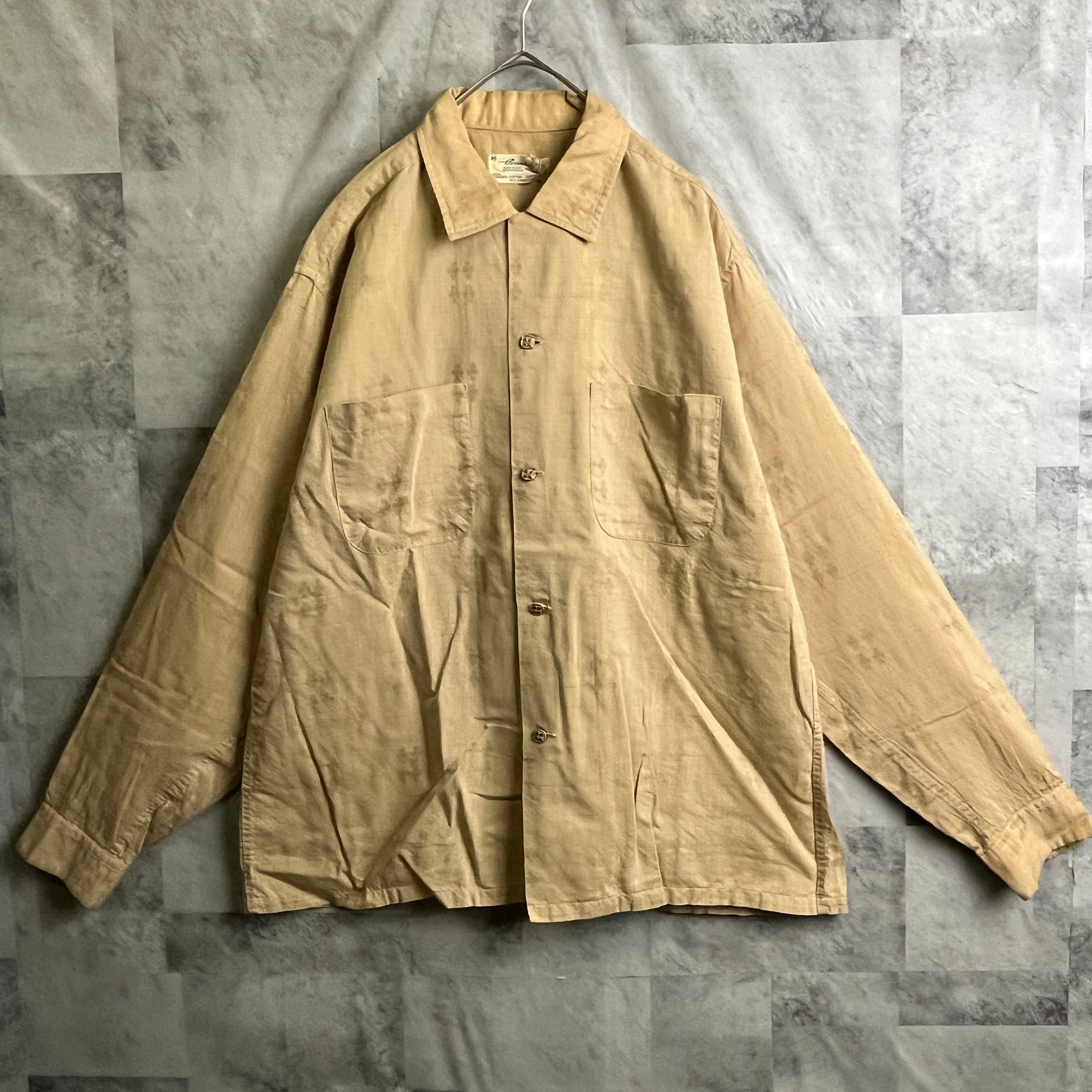 60s ヴィンテージ Pennleigh ボックスカットシャツ トランプ柄生地 ベージュ M