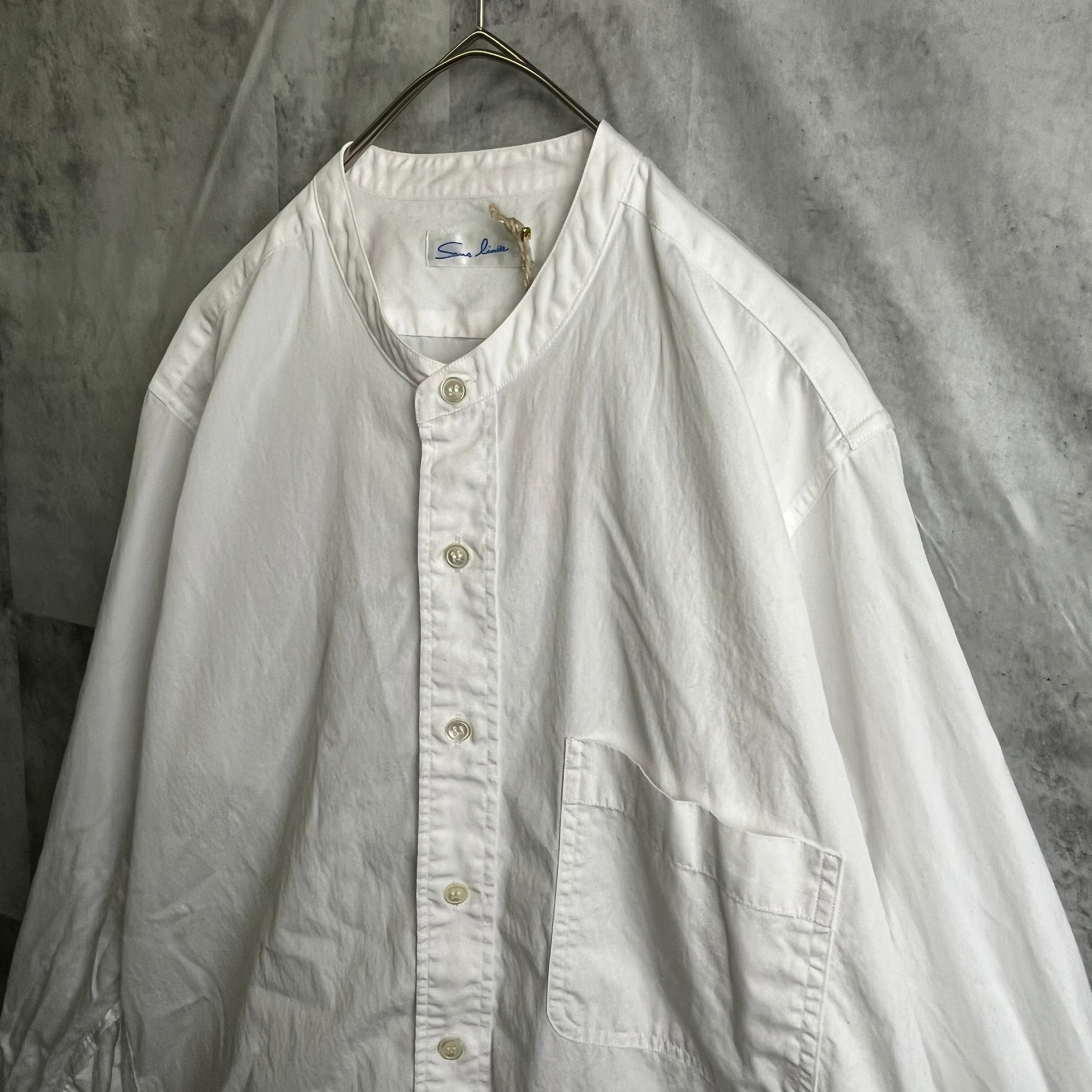 日本製 Sans Limite バンドカラーシャツ ダブルカフス ホワイト 0