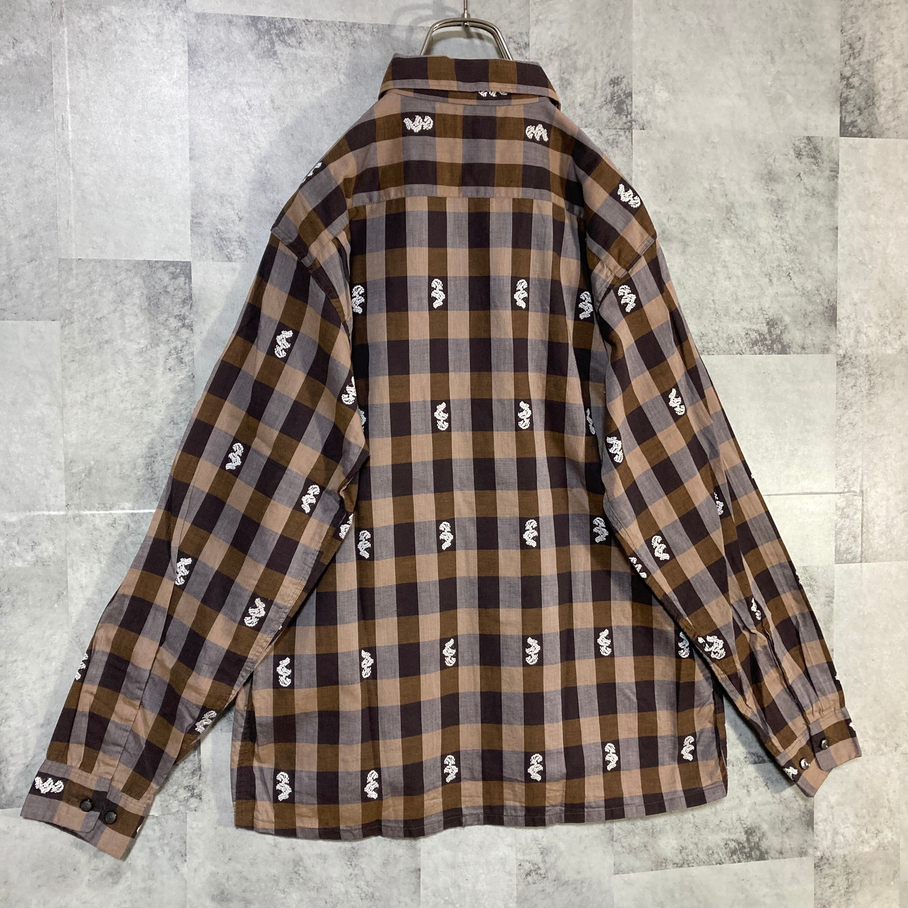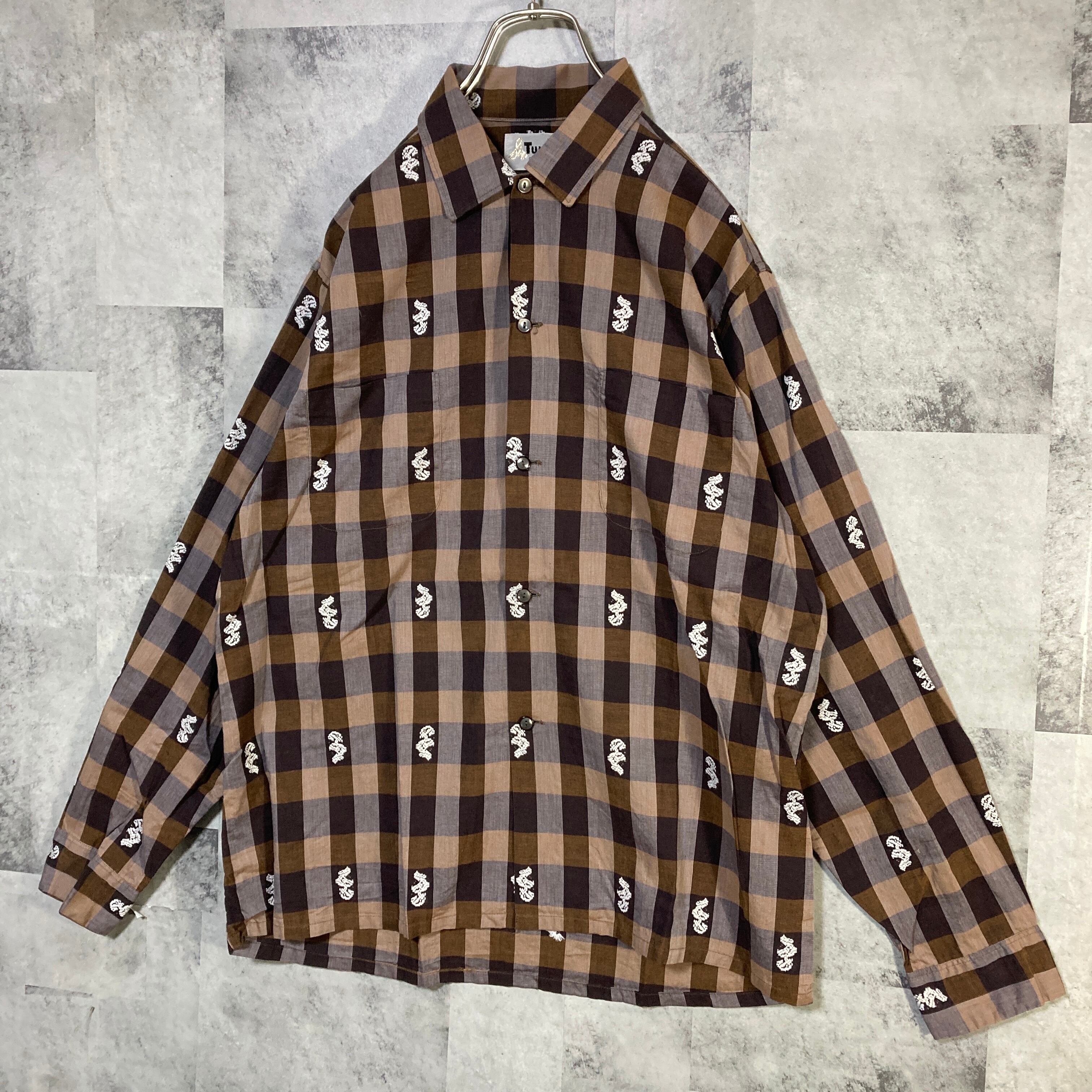 60s USA製 TULANE ボックスカットシャツ ブロックチェック&総柄 ブラウン M