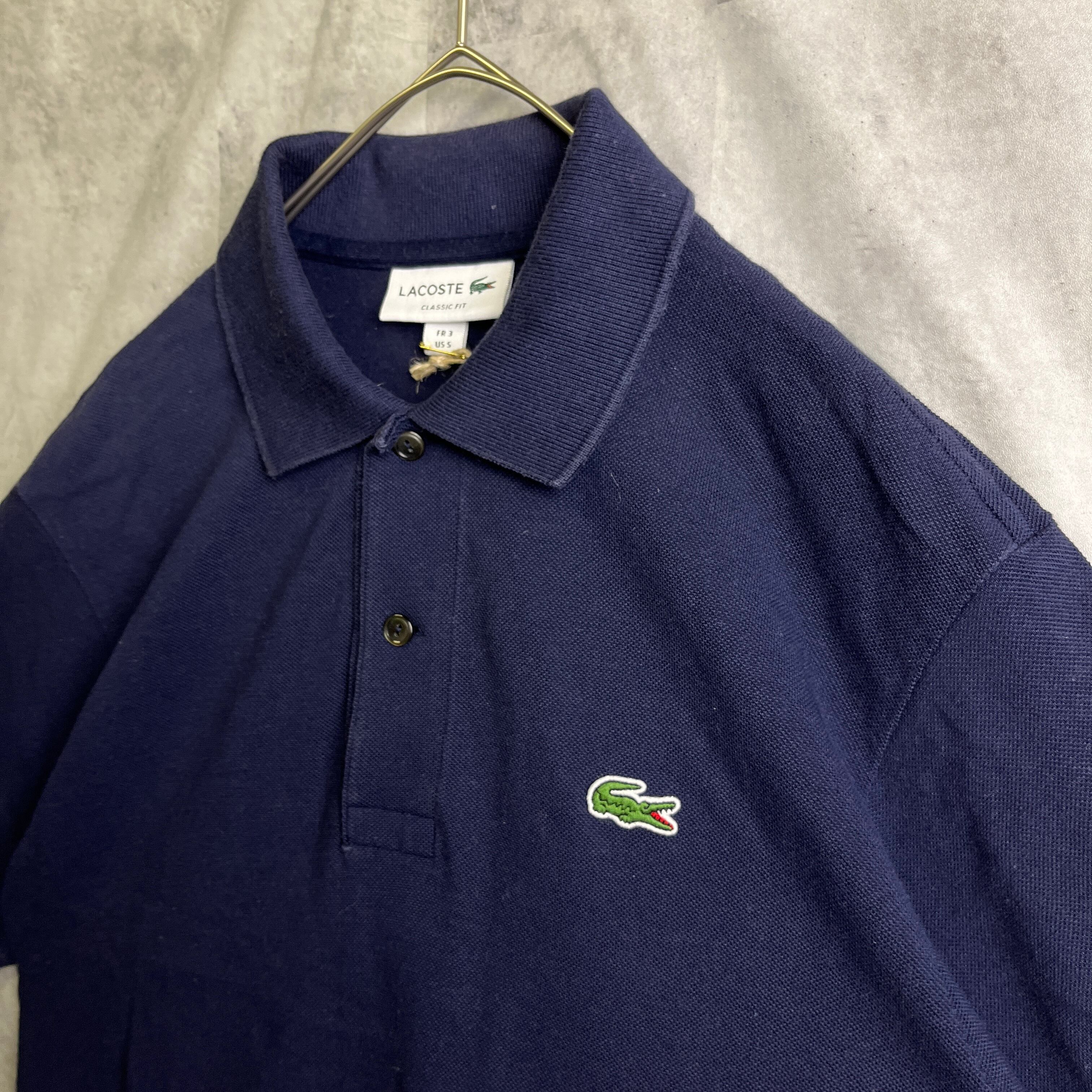 LACOSTE ラコステ 半袖 ポロシャツ 鹿子 ワンポイント刺繍ロゴ ネイビー S