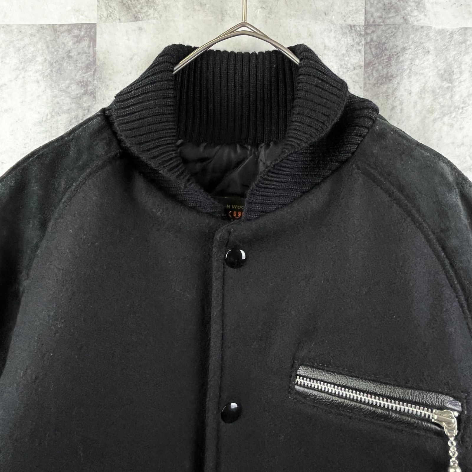 メルトンウールのボディは保温性に優れ、袖のレザーはスエードでブラックメルトンウールと相性抜群です。