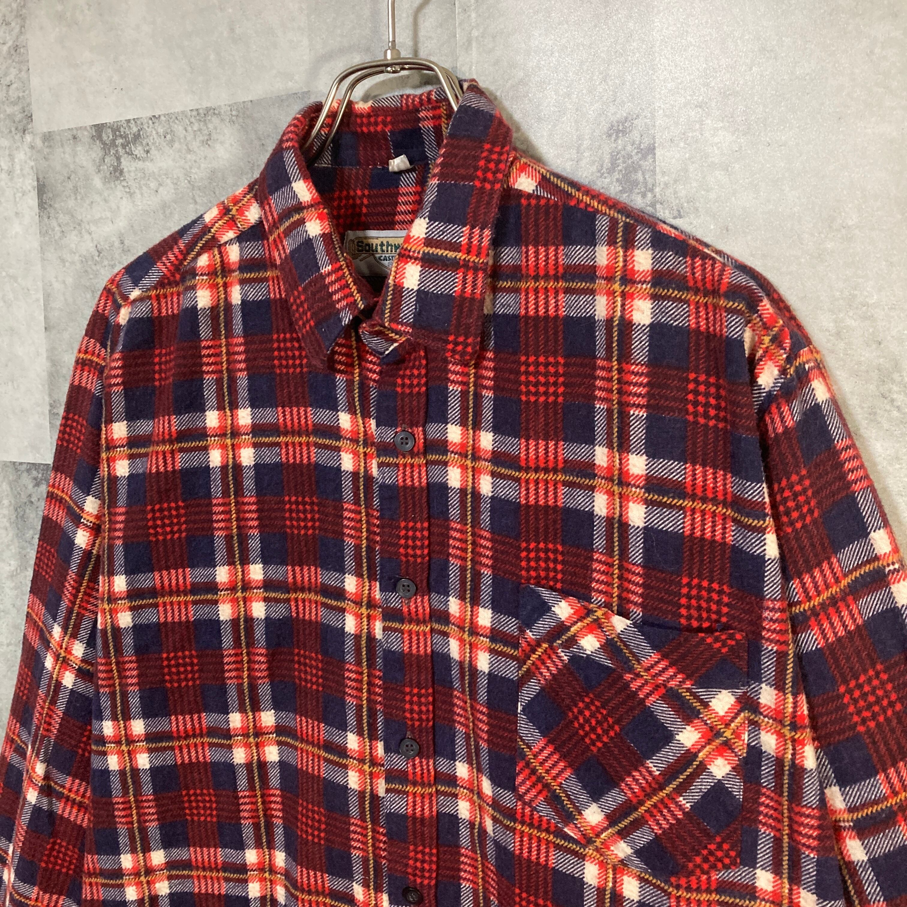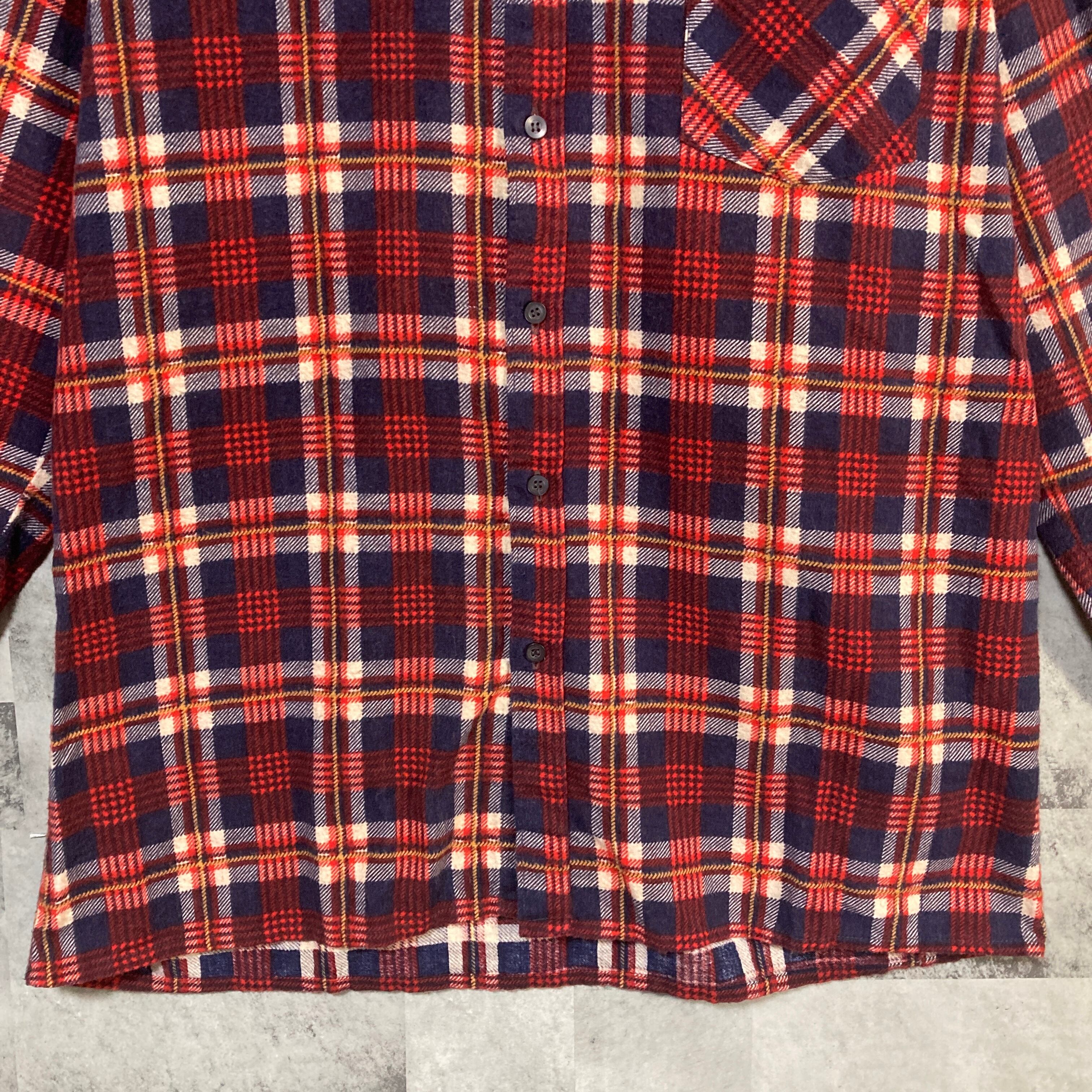 80's EURO FLANNEL SHIRT ネルシャツ ボックスカット コットン レッド L