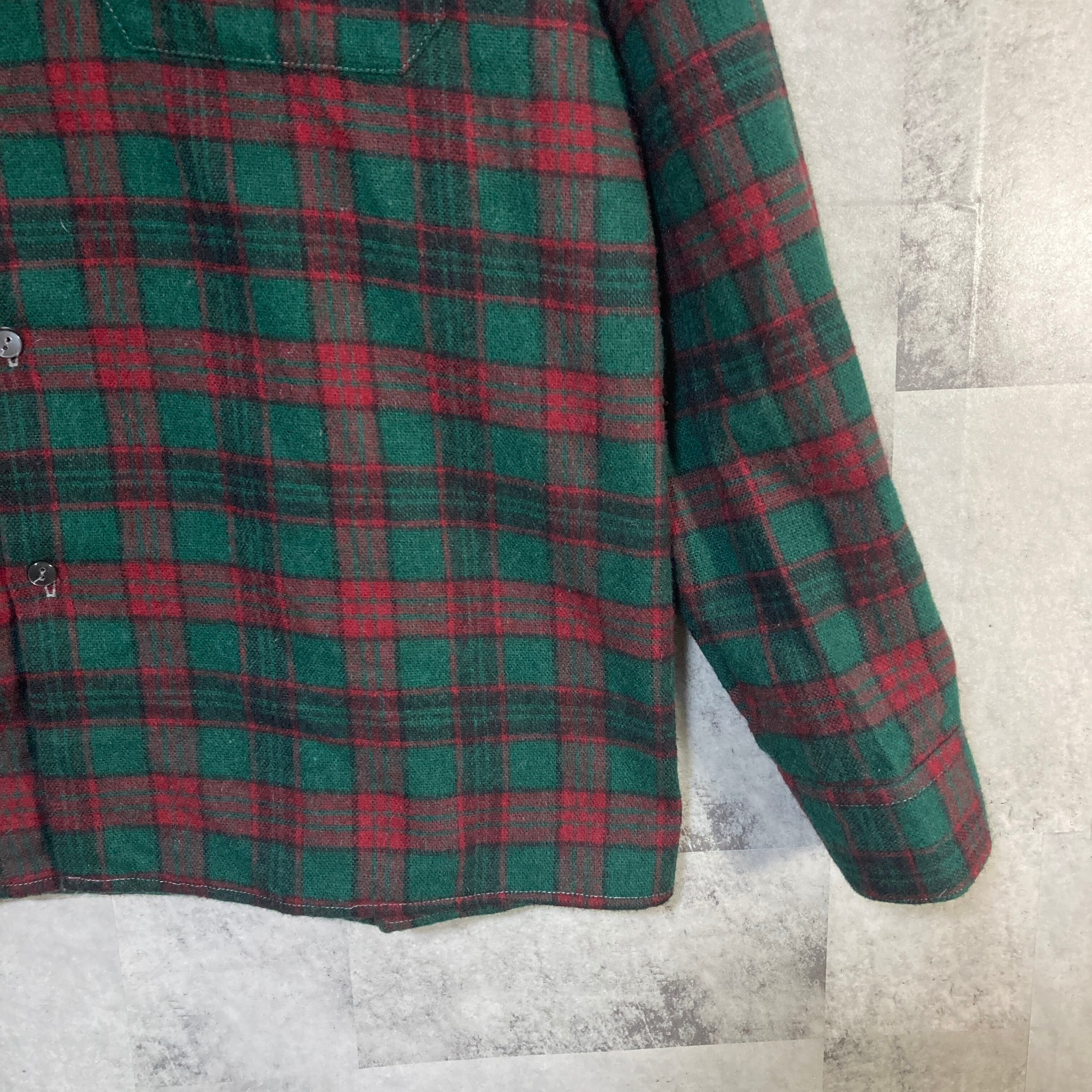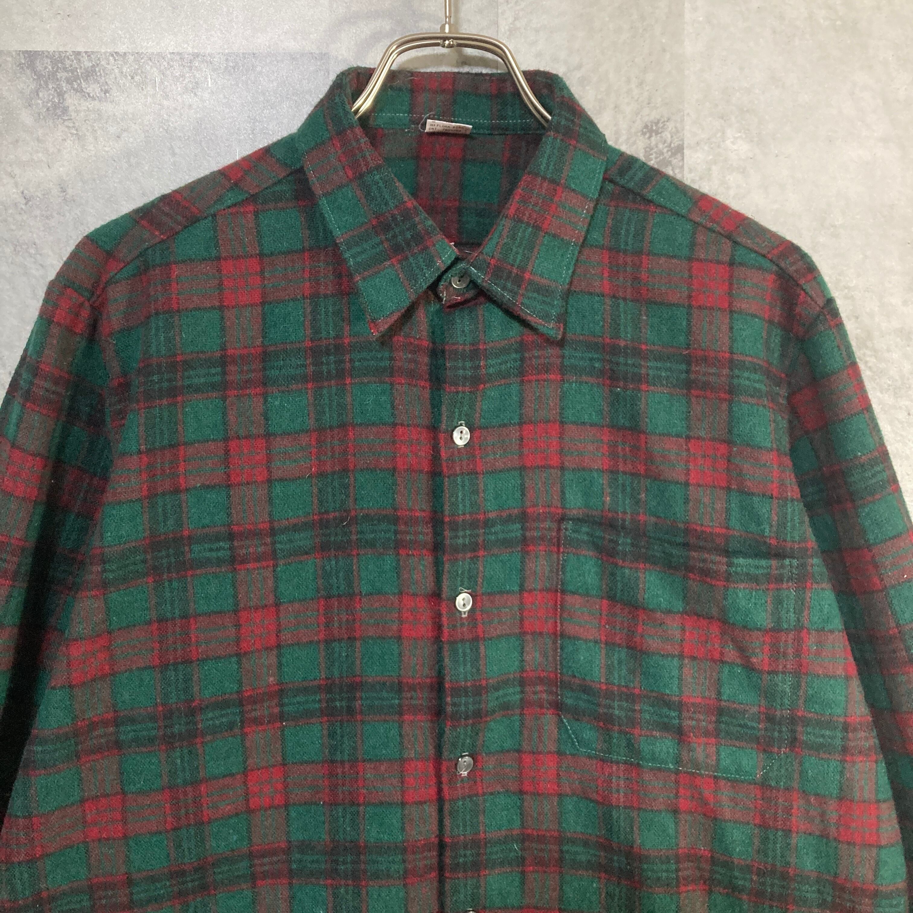 80's EURO POLYESTER SHIRT ポリエステルシャツ ボックスカット レッド&グリーン L