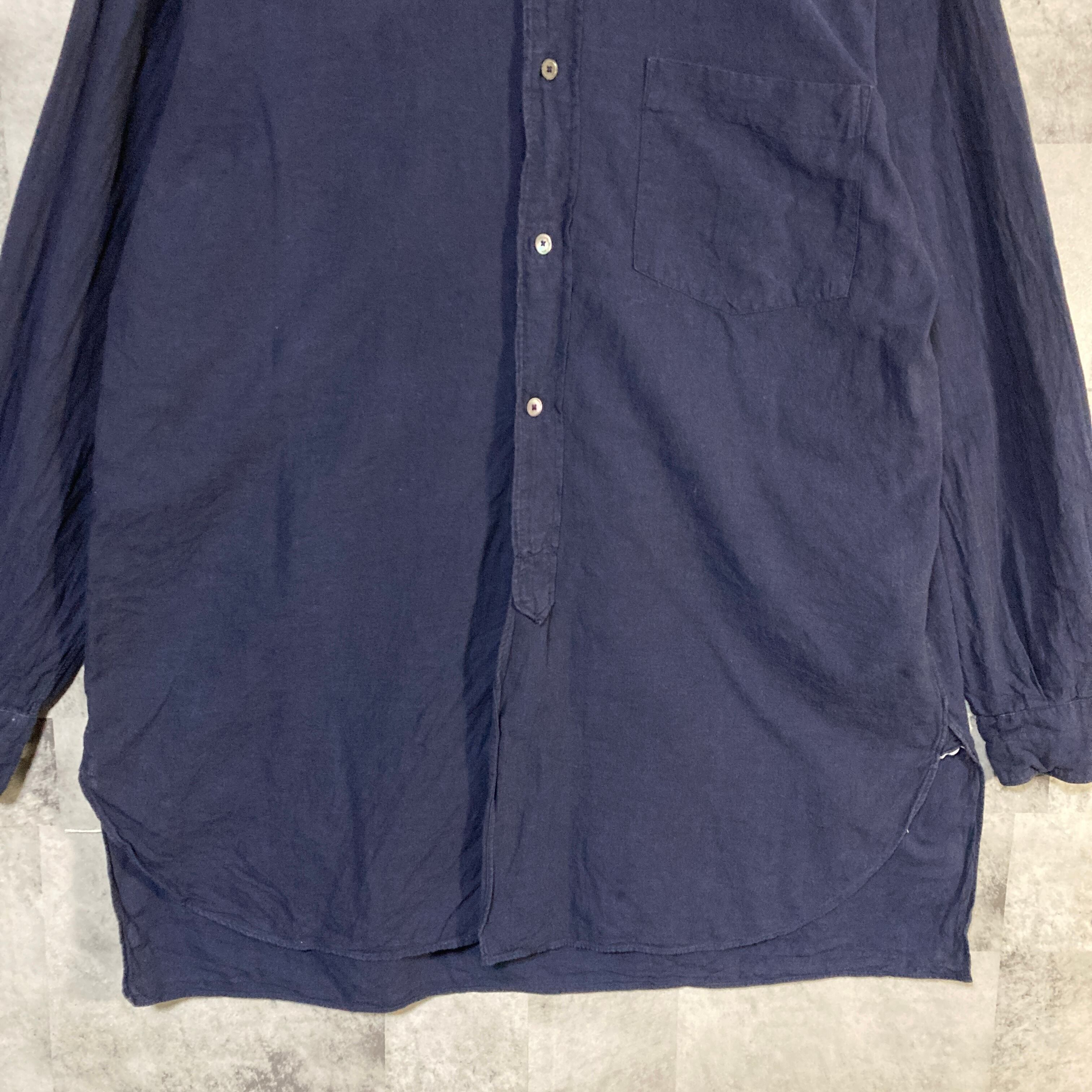 日本製 COMOLI コモリ 長袖 バンドカラー ロング シャツ ネイビー 1